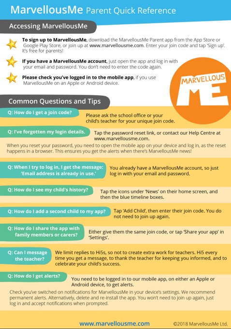 Keeping you informed of your child's activities and achievements at school is important to us, so we are excited to use the MarvellousMe parent engagement system.